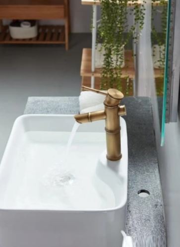 Bambu Model Rustik Antik Lavabo Bataryası Banyo Musluğu Eskitme Lavabo Armatür Otantik Bakır Görünüm