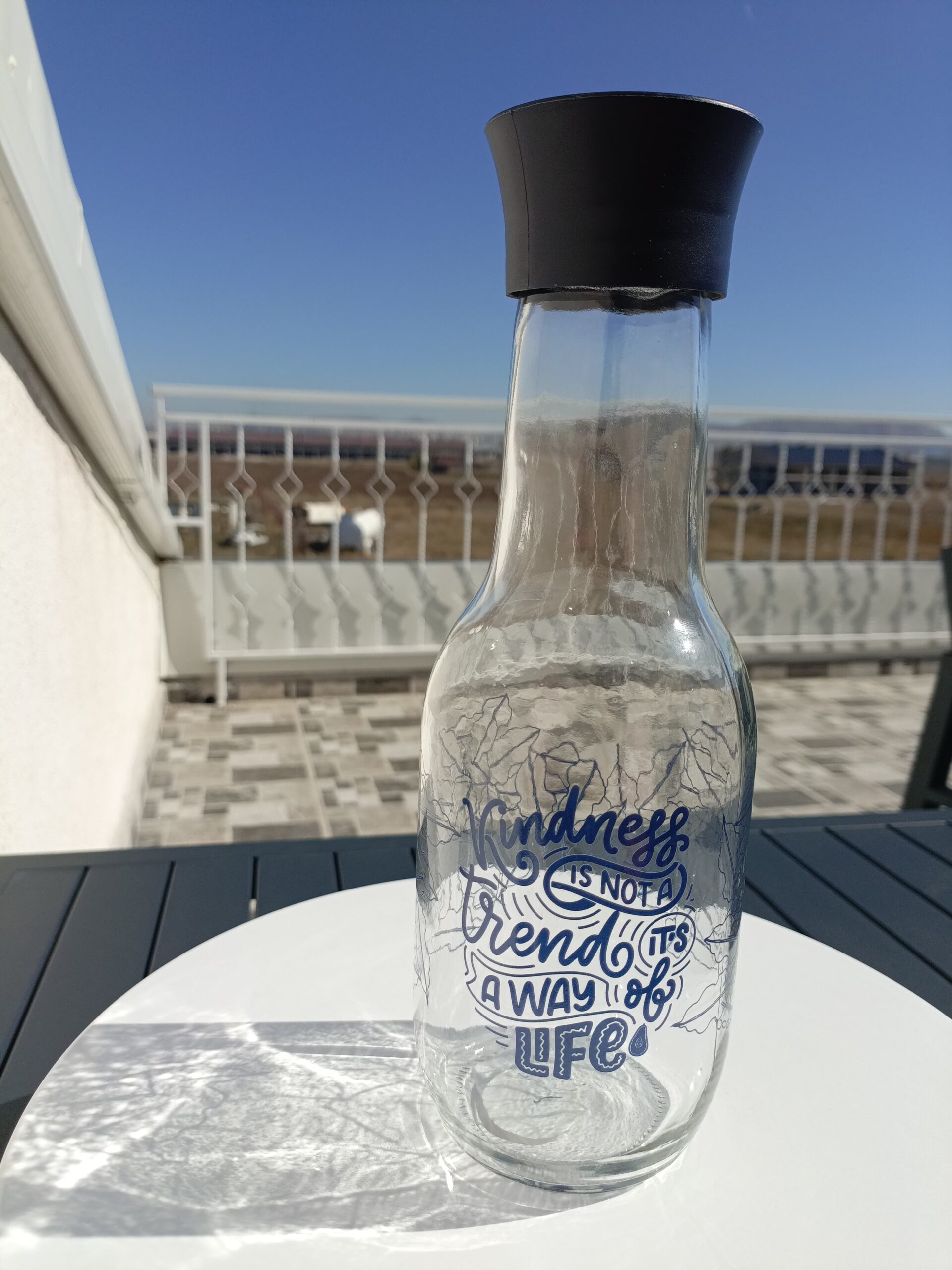 Hane Karaf Model Siyah Yaprak Desenli Cam Su Şişesi 1000cc