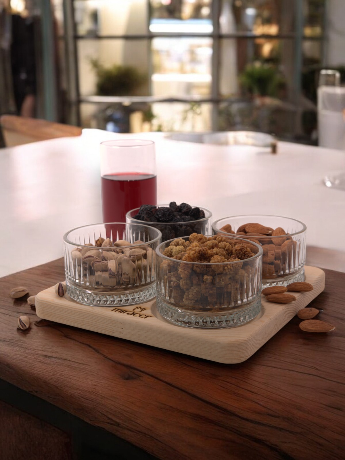 Miraçer Ahşap Tepsili Elysia Çerezlik Seti – 5 Parça