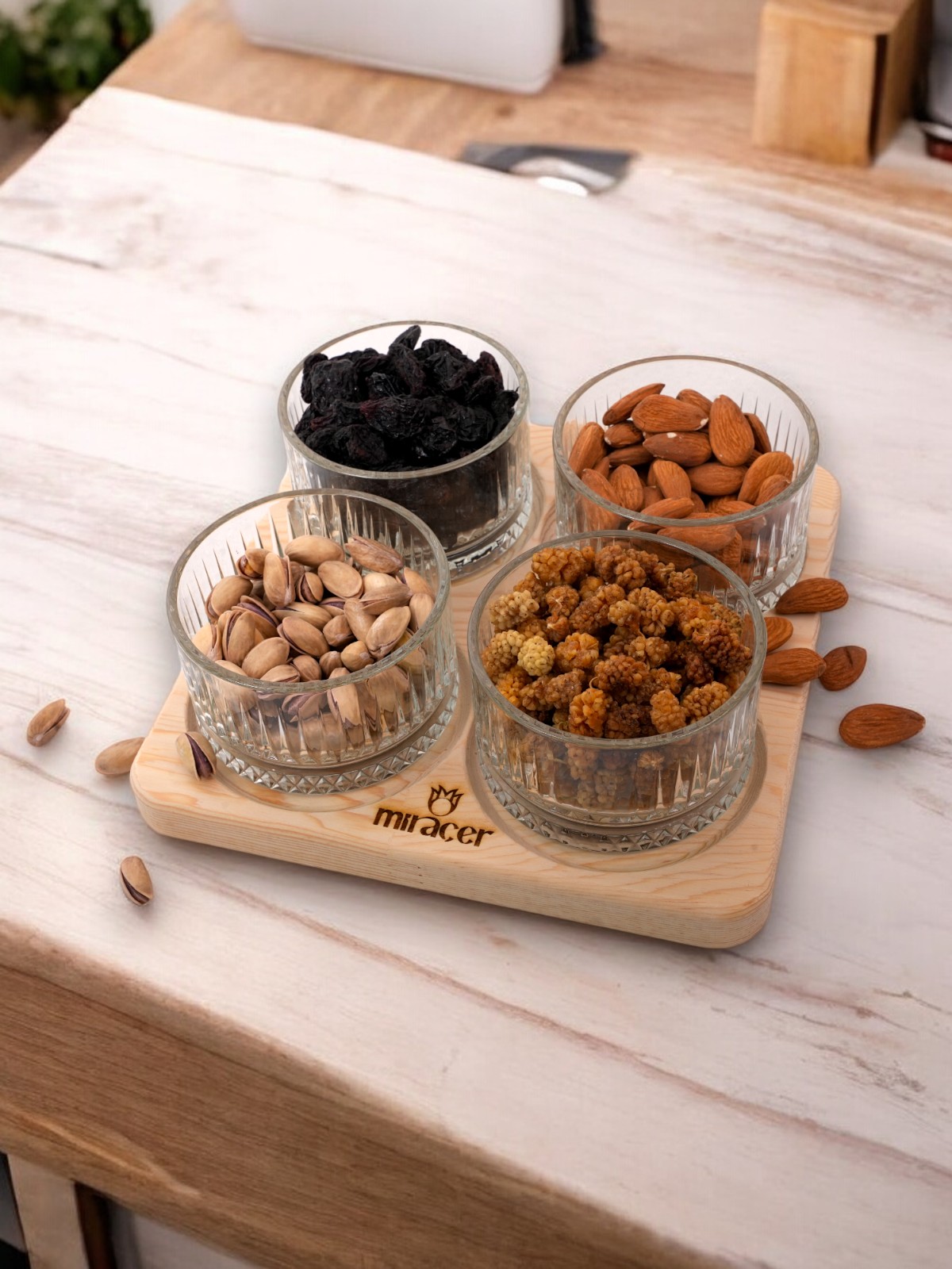 Miraçer Ahşap Tepsili Elysia Çerezlik Seti