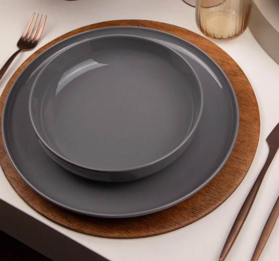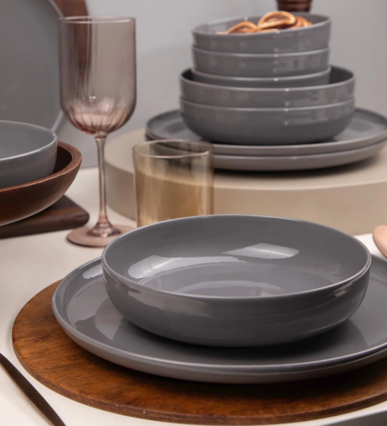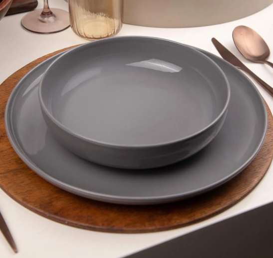 Miraçer Kütahya Porselen Moderna 12 Parça 4 Kişilik Yemek Takımı-Gri