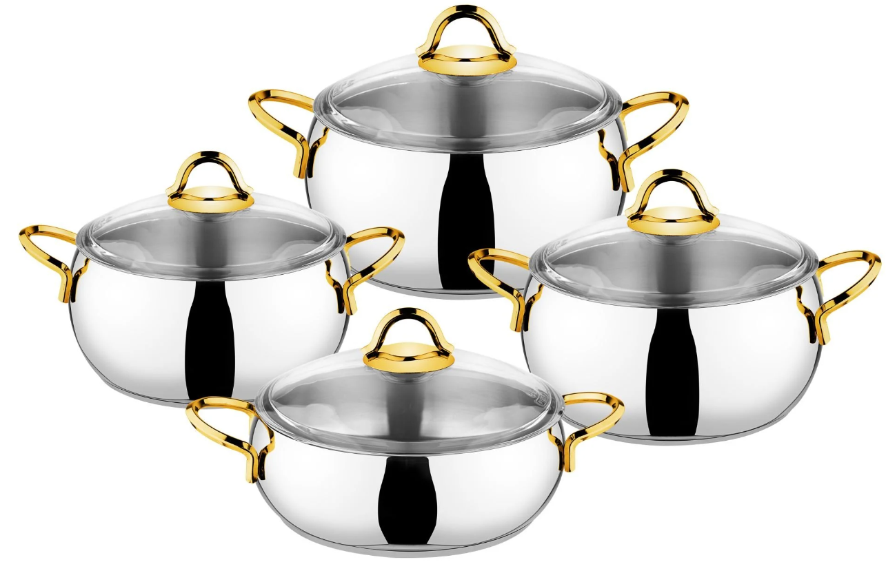 Özkent K-401 Defne Çelik Güveç 8 Parça Tencere Seti – Gold Kulplu