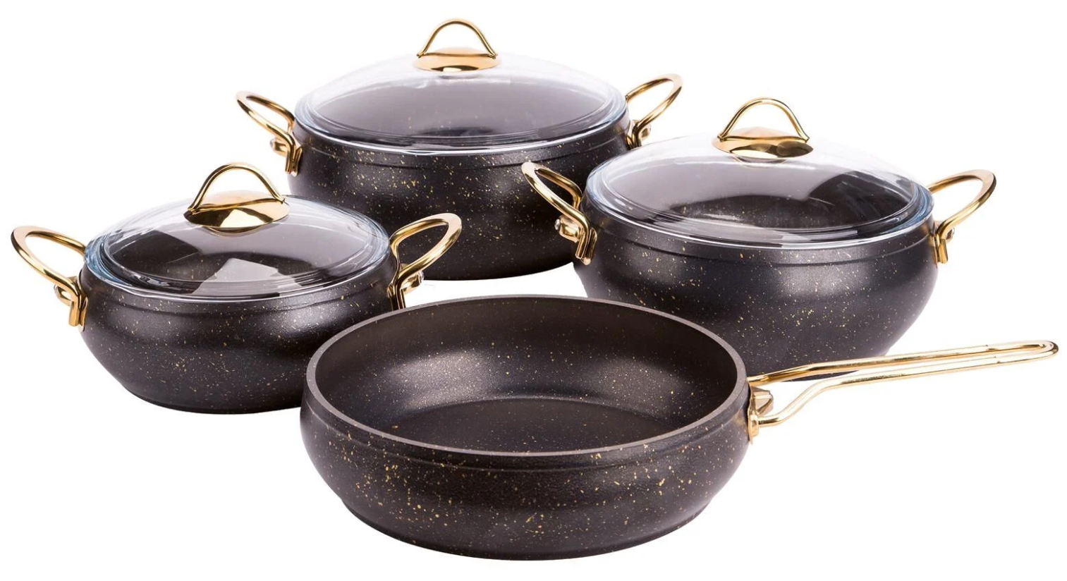 Taç Valeriya 4’lü 7 Parça Granit Döküm Tencere Seti – Siyah