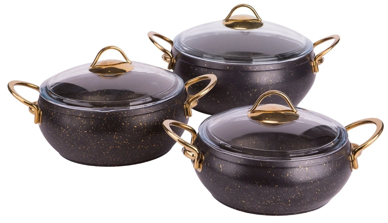 Özkent K-542 3’lü Altın Kulp Tencere Seti – Siyah