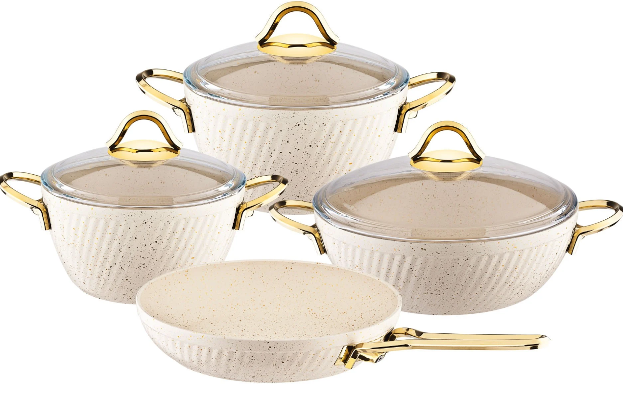 Özkent K-584 Hira Granit Güveç 7 Parça Tencere Seti – Krem