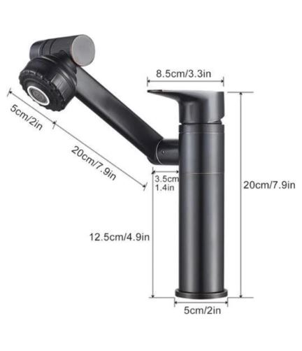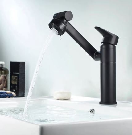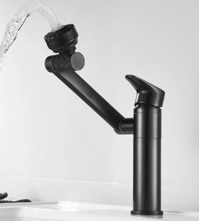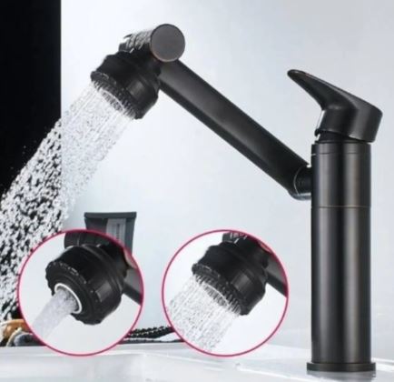 Siyah Lavabo Bataryası Çok Fonksiyonlu 360 Derece Dönerli Lavabo Musluk Çok Modlu Çift Giriş Armatür