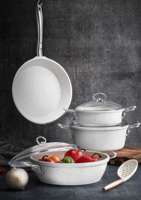 Taç Gravita Döküm 4’lü 7 Parça Tencere Seti – Beyaz
